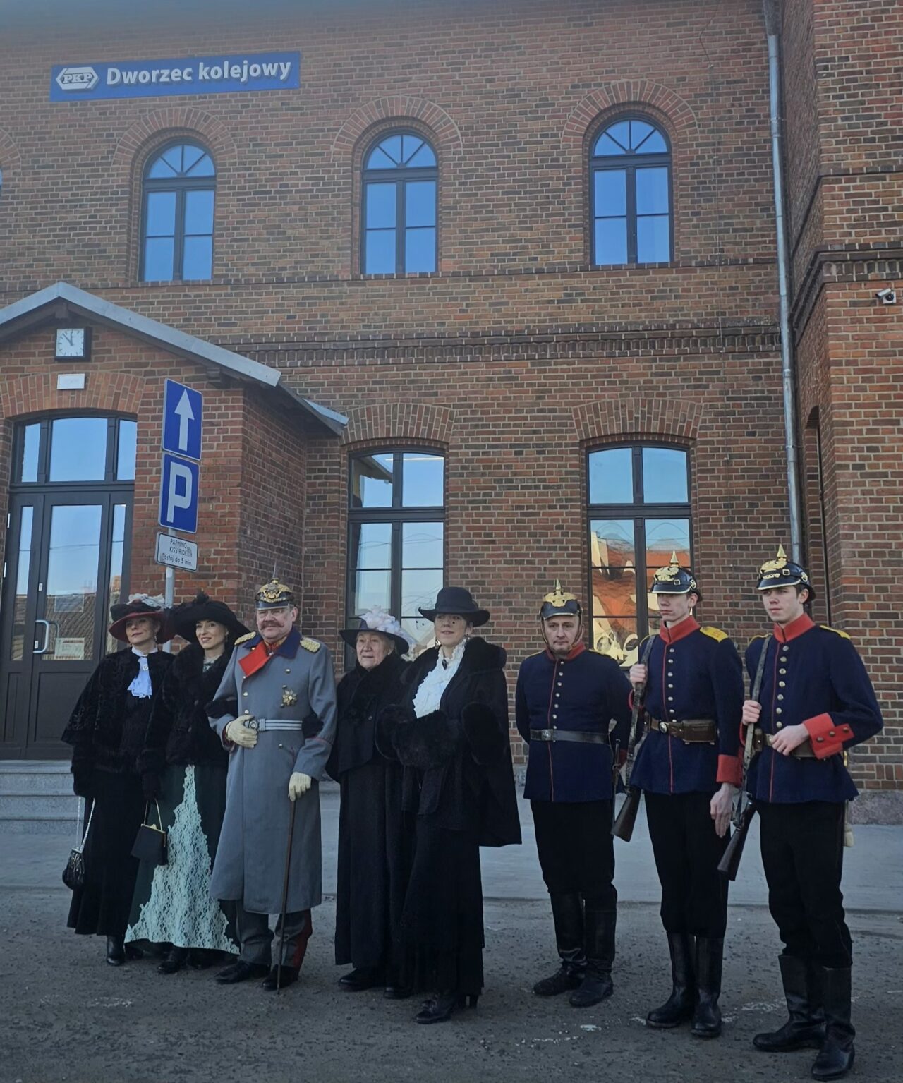 W historycznej grupie byli aktorzy Teatru Prawie Wielkiego – Janek Balcer, który w „Pasji” był krzyżowanym Jezusem, w bajce o Syrenkach, był królewiczem, teraz przedzierzgnął się w kolejarza, który „przygotowywał pociąg do odjazdu”. Były też damy – Aldona Jańczak, Ewa Matuszczak i Małgorzata Walendowska – wyglądały tak, jak gdyby przed chwilą zeszły ze starych pocztówek. Dyrektor Zajezdni Kultury Przemysław Marciniak wystąpił w czarnym długim płaszczu i czarnym kapeluszu. Wśród uczestników wydarzenia byli przedstawiciele Muzeum Ziemiaństwa z dyrektorem Darkiem Grodzińskim na czele. Właściciel dobrzyckiego pałacu Józef Czarnecki ( 1857 – 1922) był w grupie lobbującej budowę linii kolejowej. A biegła ona przez Dobrzycę, która w tym czasie leżała w granicach powiatu krotoszyńskiego.