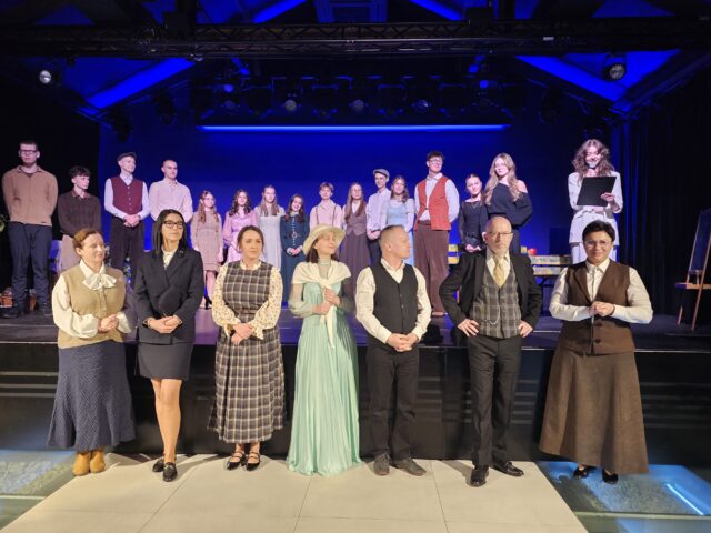 Dziękowano też Teatrowi Muzycznemu w Poznaniu za stroje, dzięki którym poczuliśmy klimaty „Ani z Zielonego Wzgórza”, Paulinie Vogt – Wawrzyniak – kierowniczce Muzeum Zamku w Gołuchowie za udostępnienie przestrzeni na zdjęcia i możliwość nagrania zwiastuna filmowego i zdjęć, które wykonała nauczycielka Edyta Brania. Dziękowano osobom odpowiedzialnym za choreografię, scenariusz, charakteryzację, scenografię, transport oraz tym, którzy udostępniali salę na próby. Także ja usłyszałam podziękowanie za promocję spektaklu. Korzystając z okazji – dziękuję młodym za możliwość udziału w tym jubileuszowym przedsięwzięciu.