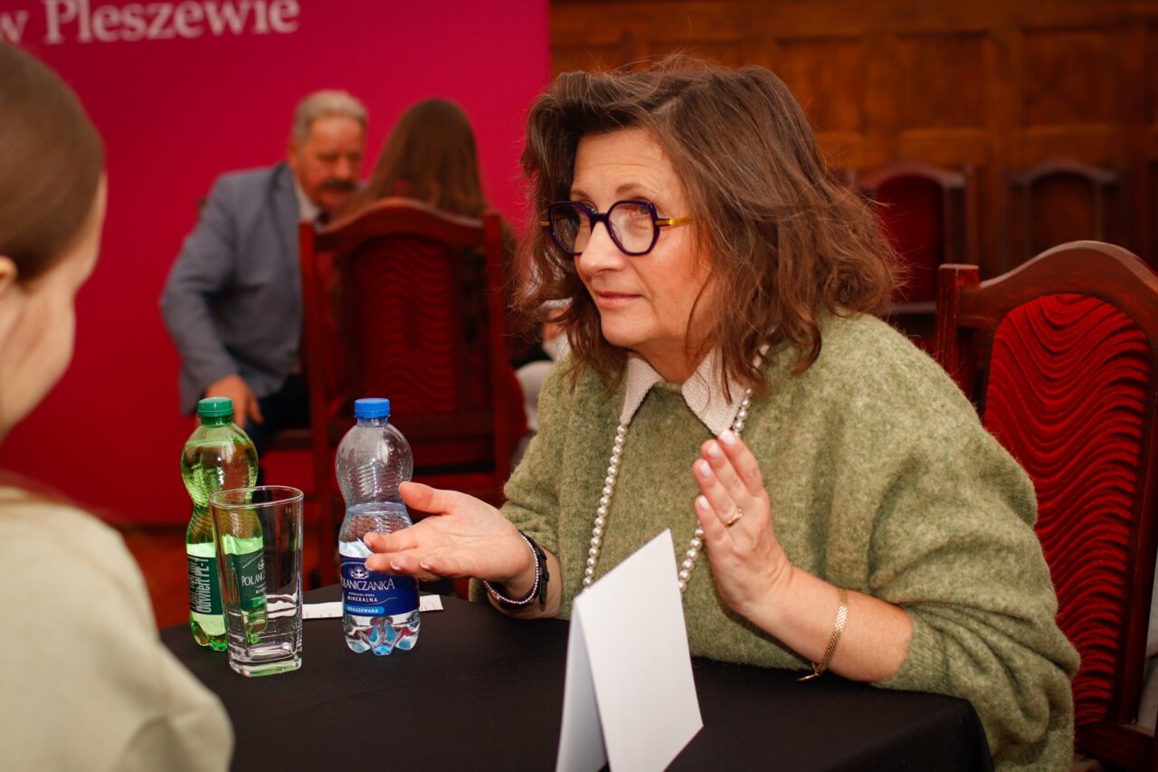 Pytano mnie o ciekawostki z historii Pleszewa. Opowiedziałam o tym, że w XIX wieku Pleszew zamieszkiwali nie tylko Polacy ale też Niemcy oraz Żydzi. Że były w mieście świątynie trzech wyznań – protestantów, ewangelików i wyznania mojżeszowego. I taka była pleszewska codzienność – wynik rozbiorów. Obok Polaka mieszkał Żyd i Niemiec i niekoniecznie na co dzień byli wrogami. Młodzi wiedzą o rozbiorach – że były, kiedy były, dlaczego były ale jak to przekładało się na realne życie – już nie za bardzo. Ale to taka moja refleksja. Wprowadziłabym do szkoły trochę regionalizmu.