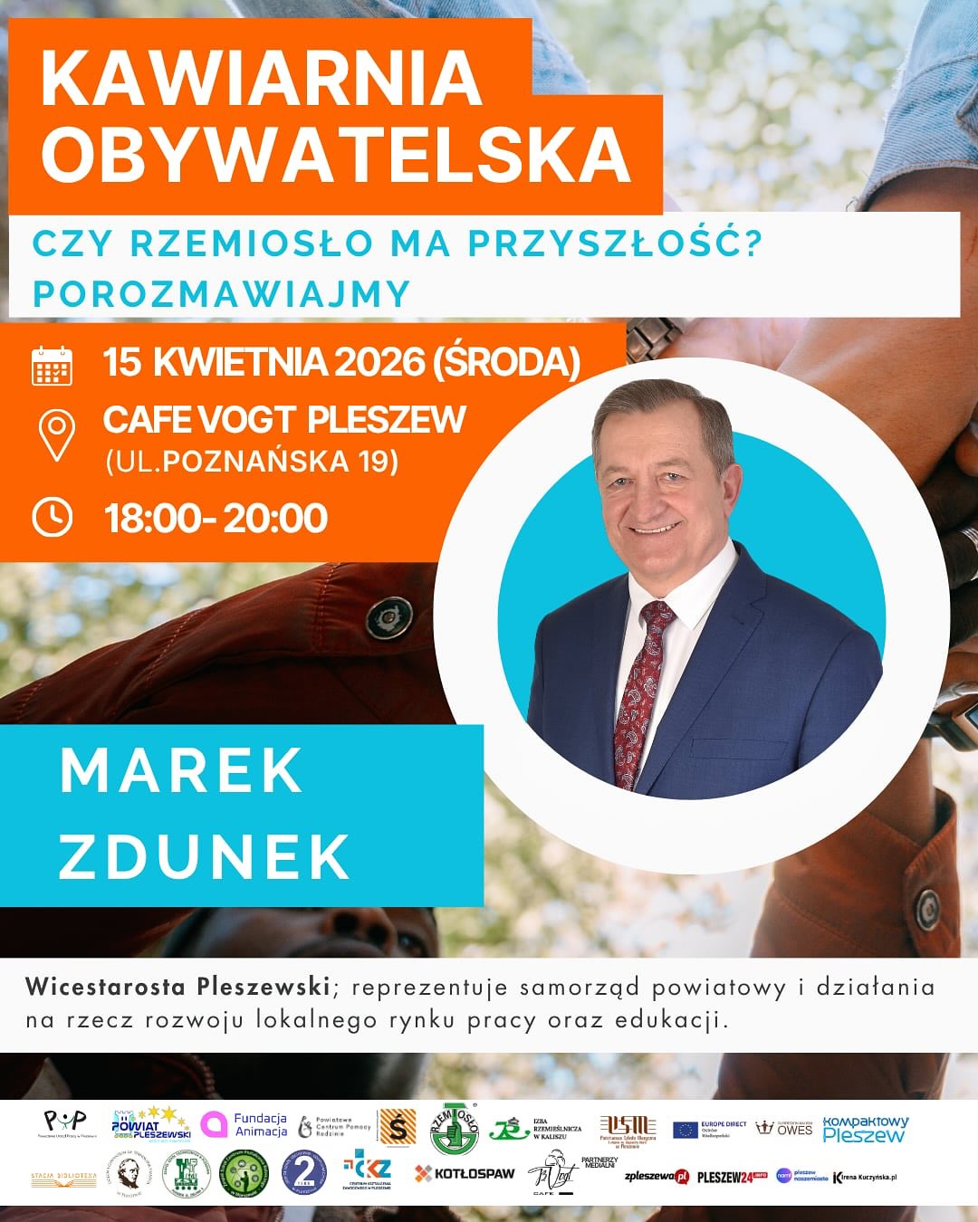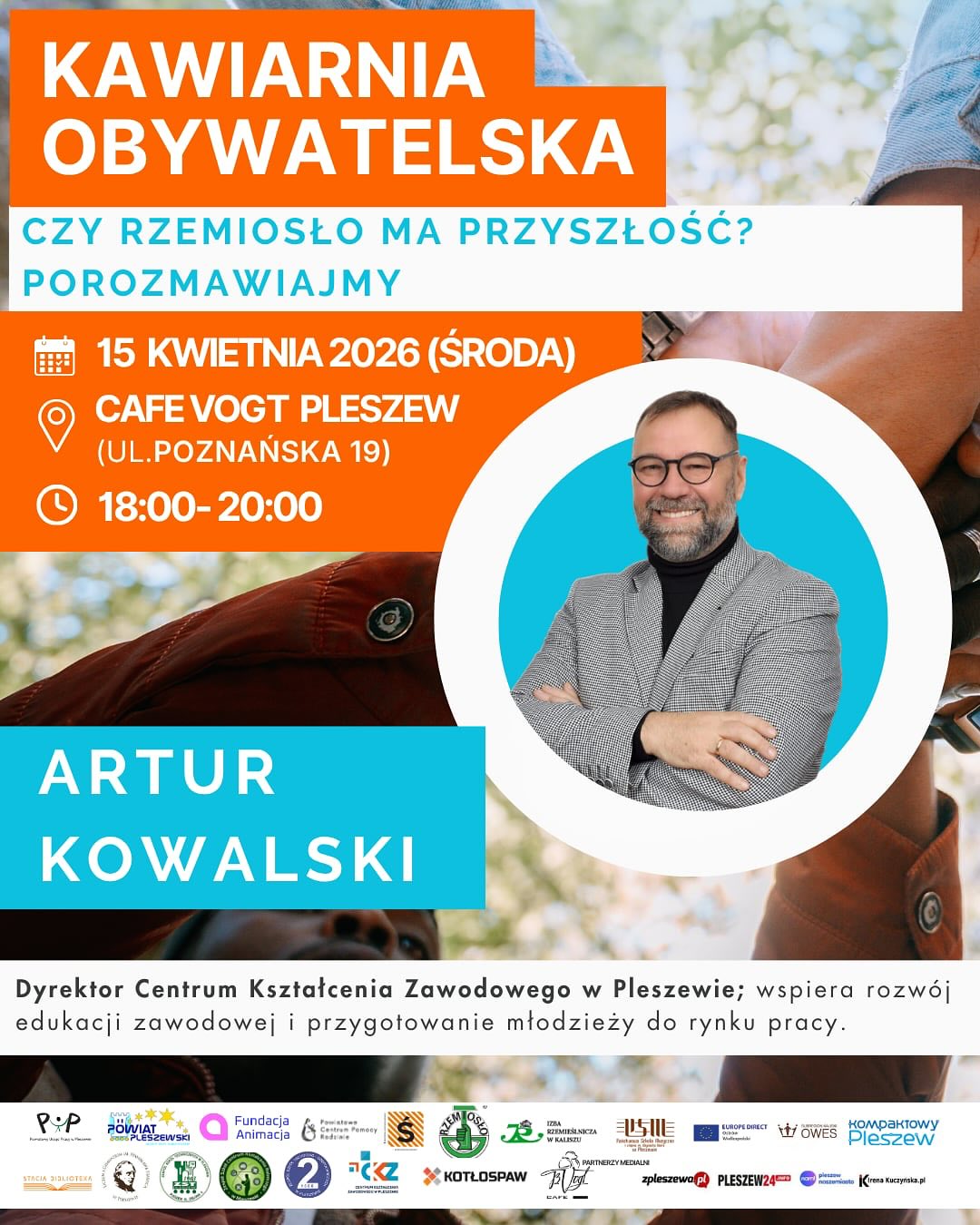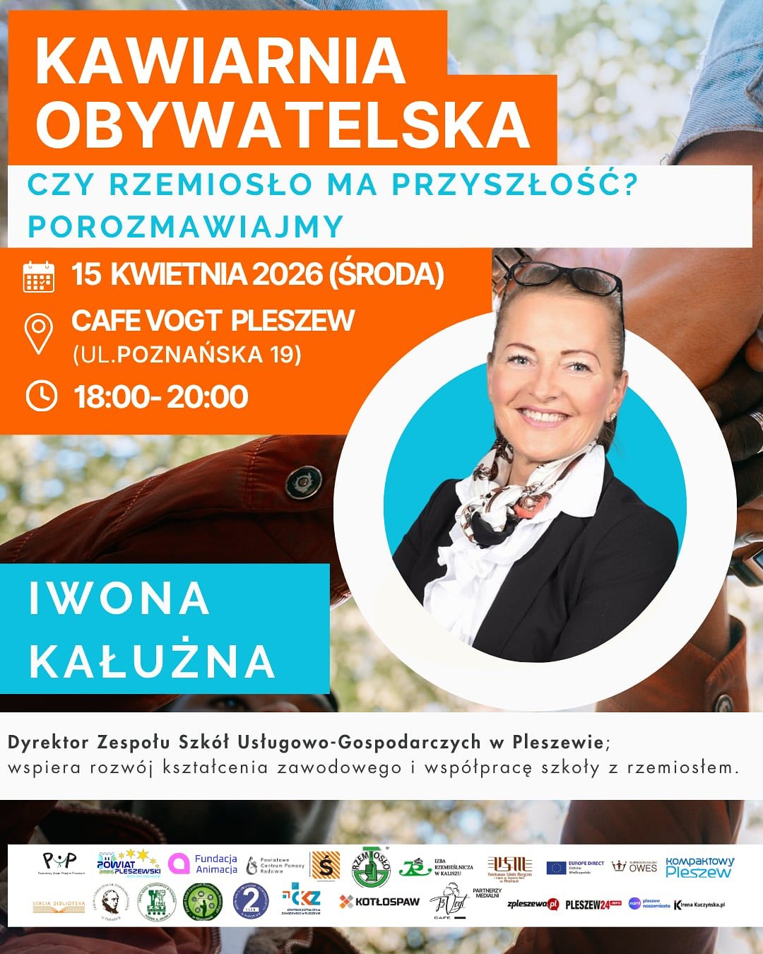 Środa to czas Kawiarni Obywatelskiej w Cafe Vogt – o godzinie 18.00 rozpocznie się panel o przyszłości rzemiosła, na którą każdy może się czuć zaproszony. W panelu wezmą udział osoby związane w różny sposób z rzemiosłem: dyrektorka Zespołu Szkół Usługowo – Gospodarczych Iwona Kałużna, Marek Zdunek – wicestarosta pleszewski, Artur Kowalski – dyrektor Centrum Kształcenia Zawodowego w Pleszewie, Maciej Całka – prezes Izby Rzemieślniczej w Kaliszu