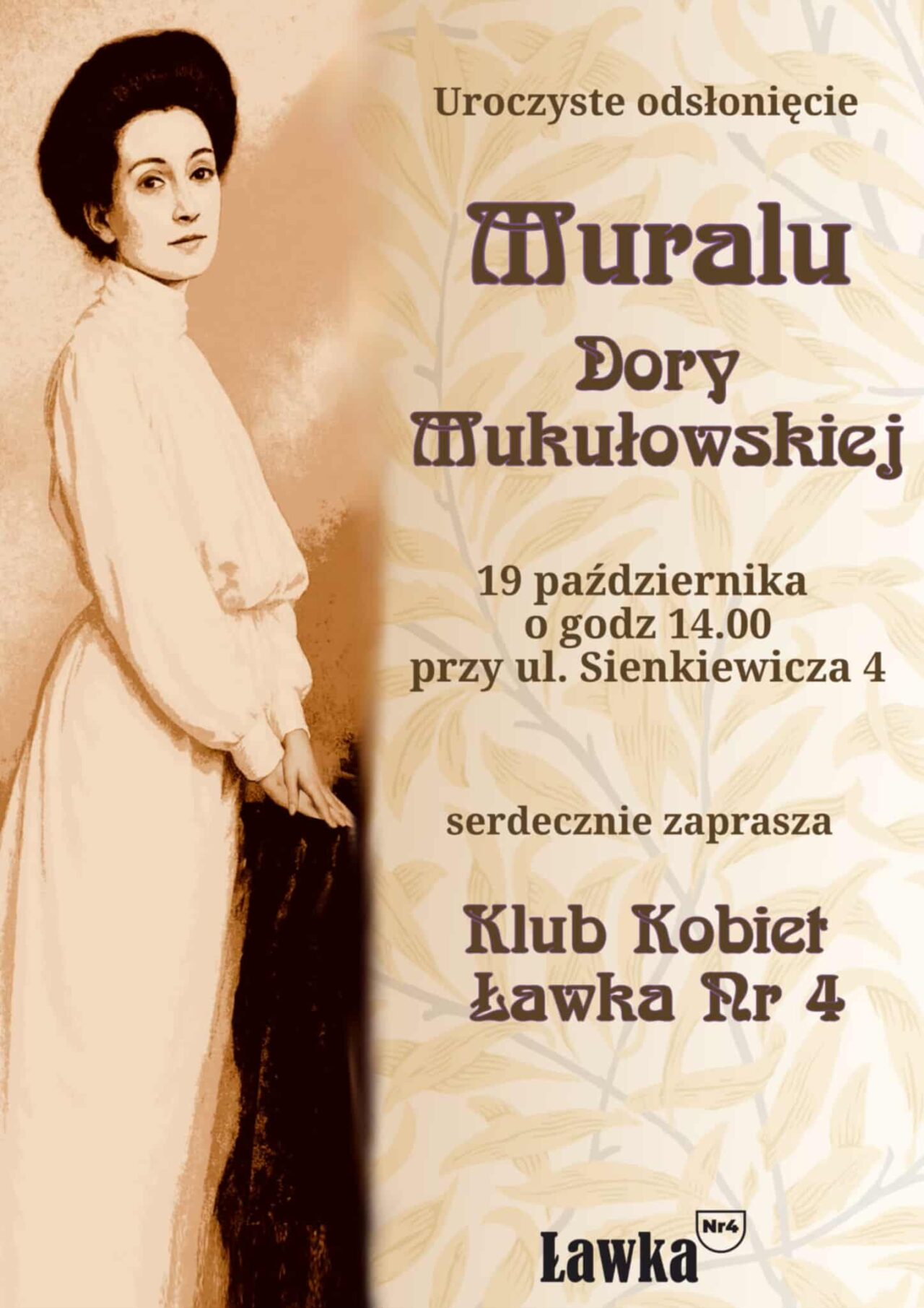 Członkinie Klubu Kobiet „Ławka nr 4” od kilku lat działają społecznie, dokumentując i upamiętniając historie kobiet związanych z regionem pleszewskim. Misją pań jest wydobywanie z niepamięci bohaterek, artystek, nauczycielek, działaczek i opiekunek lokalnych wspólnot, które swoją pracą i pasją kształtowały tożsamość regionu. Klub organizuje spotkania, wystawy, akcje artystyczne i projekty edukacyjne, które łączą historię z nowoczesnymi formami przekazu. Postać Dory Mukułowskiej podsunęła do upamiętnienia Ewa Matuszczak z Kowalewa.