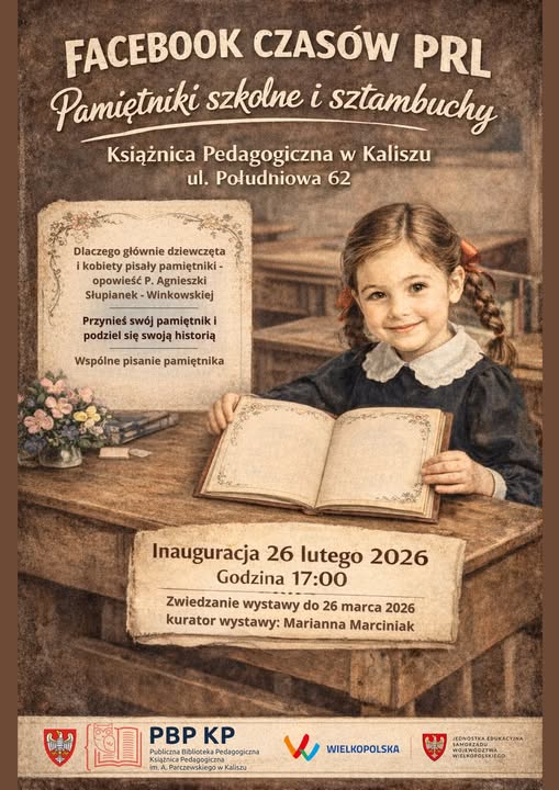 Spotkanie pod kryptonimem „Facebook czasów PRL-u. Dawne pamiętniki i sztambuchy” odbyło się w PBP Książnica Pedagogicznej im. A. Parczewskiego  z inspiracji bibliotekarki Marianny Marciniak. Mnie poprosiła o moje pamiętniki Agnieszka Słupianek – Winkowska – regionalistka, herstoryczka, wykładowczyni – członkini Kaliskiego Towarzystwa Przyjaciół Nauk. To ona podczas otwarcia wystawy podzieliła się z obecnymi swoją wiedzą o pamiętnikach. Wcześniej kuratorka wystawy Marianna Marciniak zaprezentowała zawartość 50 pamiętników, dzieląc dostarczone do książnicy pamiętniki wg dat ale też zawartości.