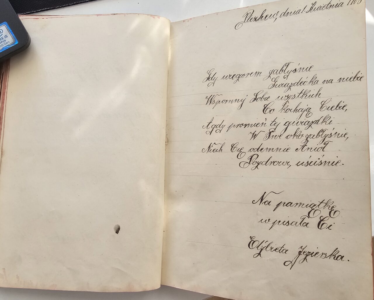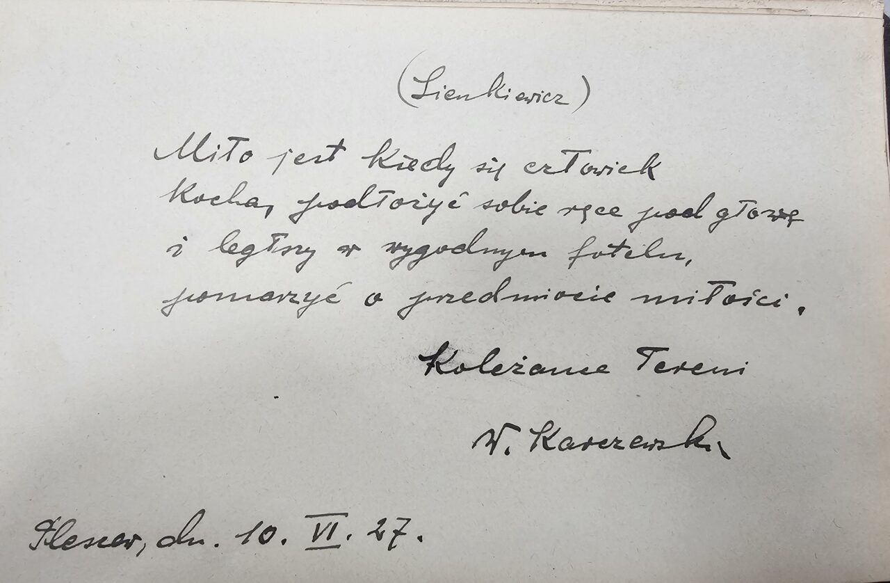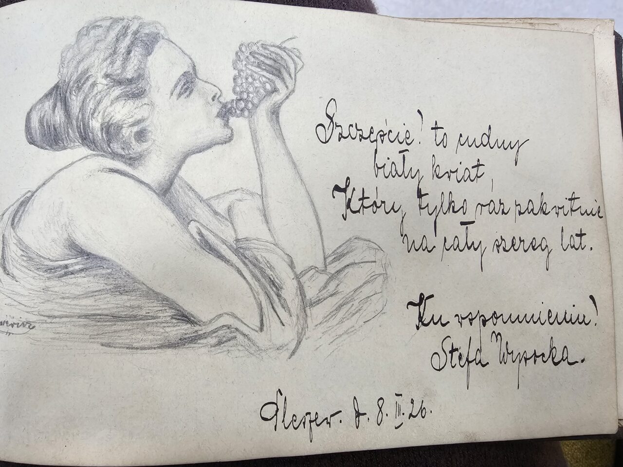 Tymczasem wracam do pamiętników. Agnieszka Słupianek – Winkowska podkreślała, że zawartość obu pamiętników wskazuje na to, że nie były one jedynie zbiorem okazjonalnych dedykacji. Znajdujemy w nich cytaty literackie, wiersze, sentencje, a także rysunki – świadectwa kultury słowa i estetyki wpisów charakterystycznej dla młodzieży pierwszych dekad XX wieku. Zdaniem mówczyni analiza języka, stylu, doboru tekstów oraz charakteru pisma umożliwia badanie nie tylko relacji interpersonalnych, ale także wzorców edukacyjnych, aspiracji kulturowych i form autokreacji.